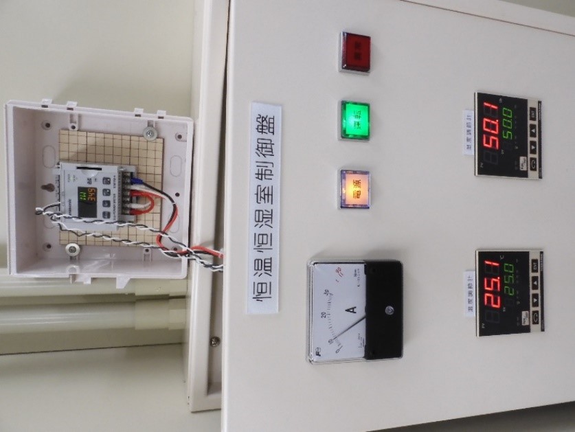 これは、天井の上の大きな空調機は、そのままにして、弊社の小型の装置を室内に置き、制御盤も空調機の脇に、小型の物を設置しました。