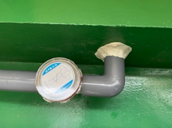 この排水管を建物の排水口に間接的であっても接続しますと、建物の排水管は雑排水の流しやトイレにつながっている事が有り、排水管は陰圧ですから生活排水の腐敗臭が室内に流れ込みます。