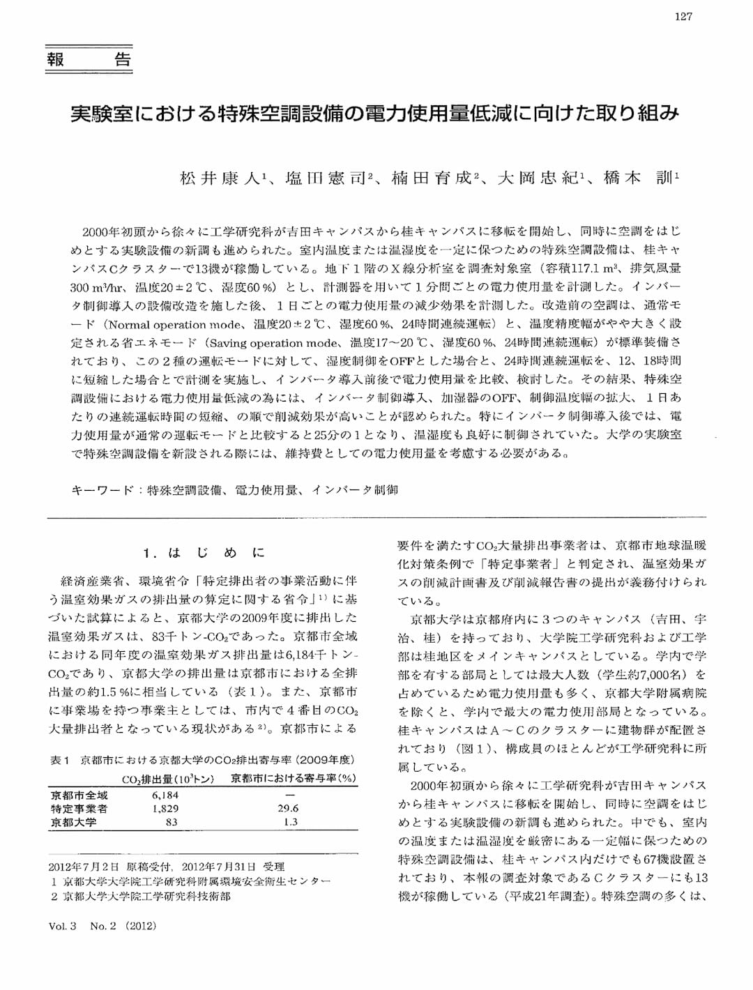 京都大学様には多くの恒温恒湿室があり、桂キャンパスに集中しているそうです。その消費電力は、京都府で2番と言われる程の大きな消費量だそうです。
