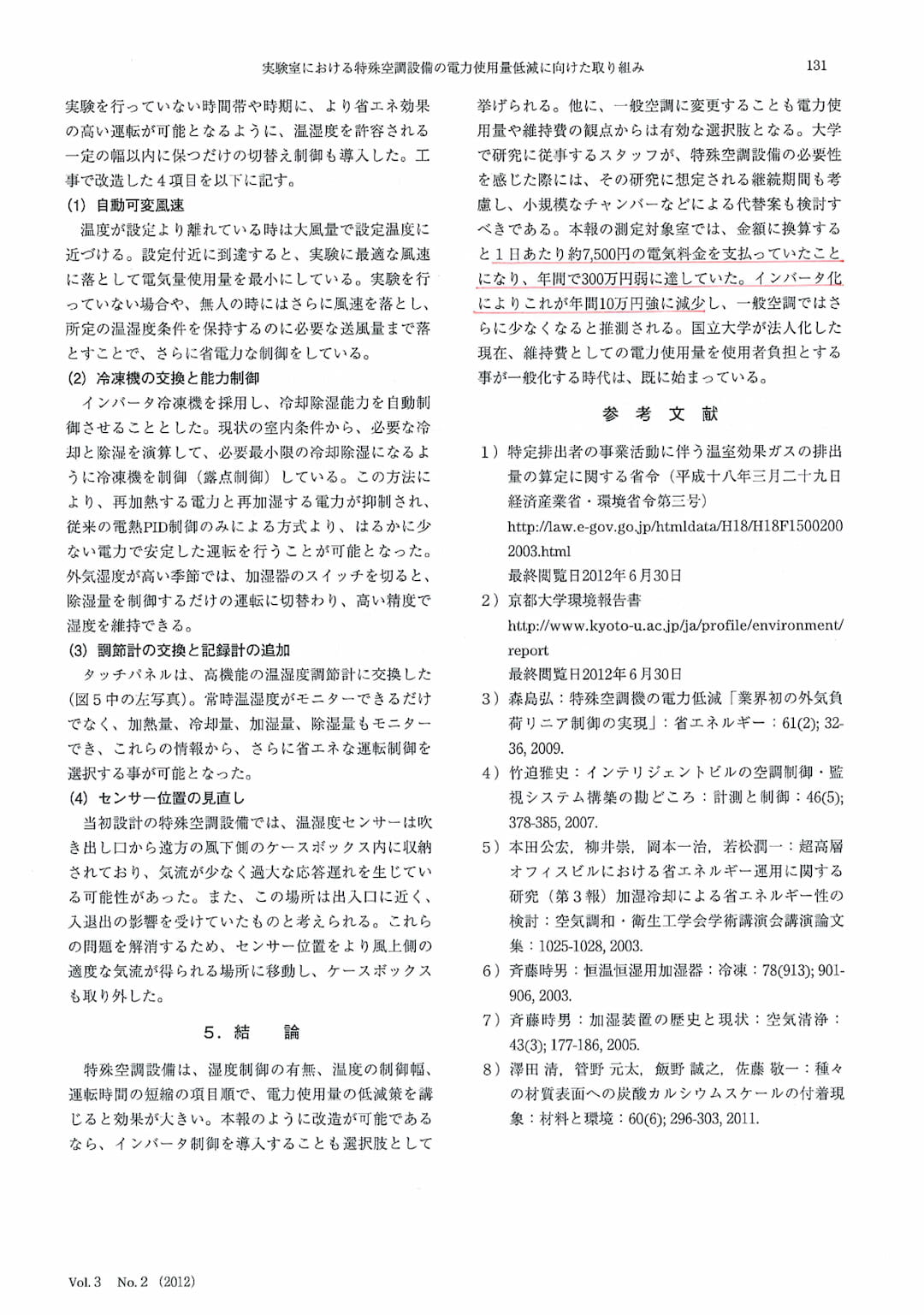 その後、大学側から、教授ら関係者の連名で報告書が出されました。消費電力は、1/25に削減され、年間300万円弱だった電力料金は、10万円強に改善されたと、正式に報告書として発表されております。