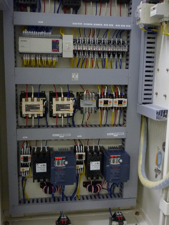 制御盤の外箱はそのまま利用して、内部の制御回路だけを、弊社CSC方式に改造しております。