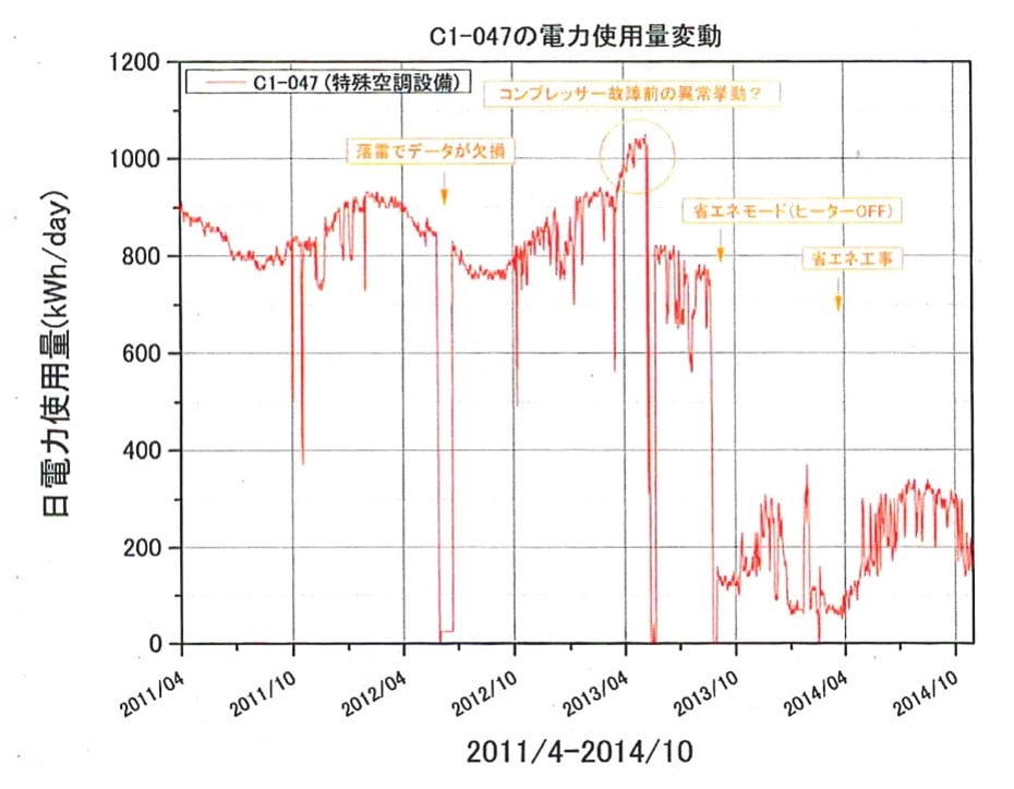 大学側では、省エネモードで運転しても、十分な恒温恒湿室の精度が得られ、実験に大きな影響が無い為に、年間を通して、省エネモードだけで運転していた様です。