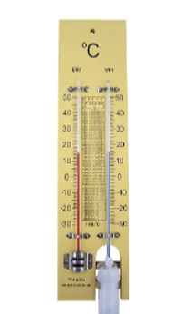 安価な壁掛けの、赤い指示のアルコール温度計を2本使用した、乾湿球温湿度計も有りますが、これは、簡易型であり、湿球に当たる風が不安定なので、恒温恒湿室の湿度の精度の確認管理には使用出来ません。