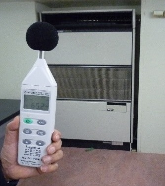 実際の空調機交換作業開始時には故障しており、残念ですが、騒音値は測定できませんでした。経験上の耳騒音計では、60dbを超える位の騒音であったと推測されました。