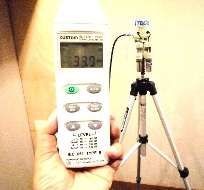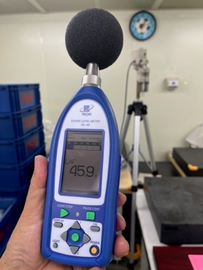 本試験室の改造後の騒音値は、45.9dbですから、かなり静かなオフィスの騒音値と同等のレベルにまで低下しました。