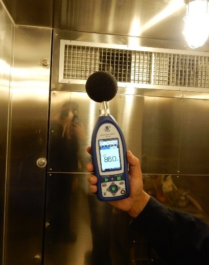 騒音値は、86dbで、これは室内で、警報ブザーが鳴ってる様な状態です。とても連続で入室していられません。試験室とは言え、実際にこの様な酷い製品が納入され、使用されていた事にも驚きました。