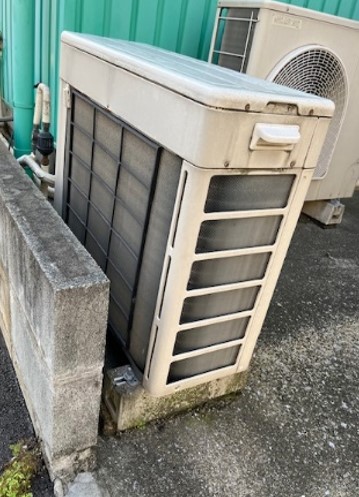 地上置きの場合は、ここに枯葉、虫の死骸等が付着して、熱交換を阻害して、冷媒の圧力が上昇して、高圧カットと呼ばれる異常停止を起こす事が有ります。