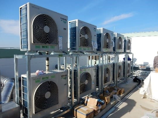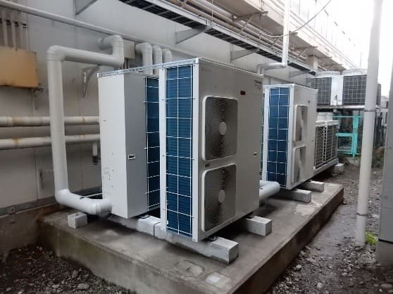 恒温恒湿室や環境試験室の設置には、必ず冷凍機の設置が必要です。エアコンで言う所の室外機で、できるだけ屋外の風通しの良い所に設置する必要が有ります。