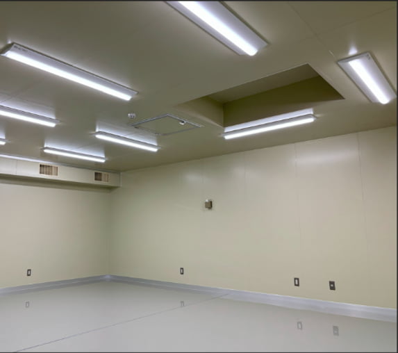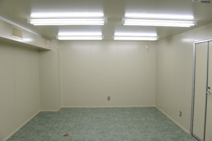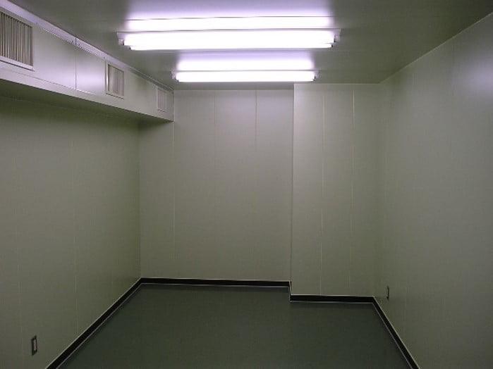 試験室の平面は設置場所に合わせて、複雑な凹凸にも出来ますし、天井もご希望に合わせて、凹凸に出来ます。狭い場所に出来るだけ大きな試験室を設置したい場合は、ご相談ください。