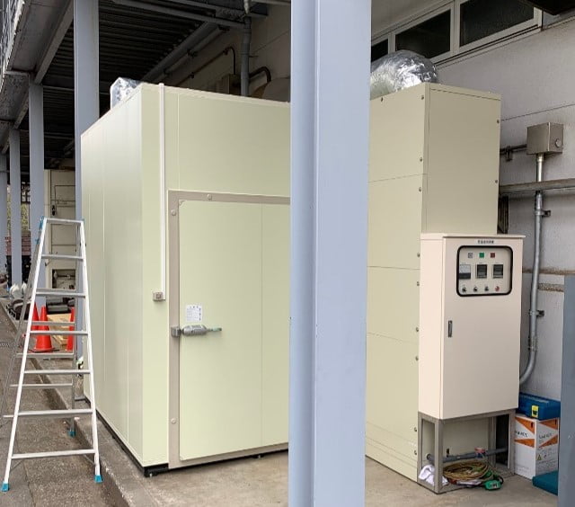 工場内には設置する場所が無く、工場の軒下や、屋外に設置した例も有ります。