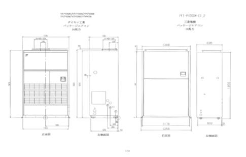 現在はパッケージエアコンもインバータ化されましたので、能力制御が出来る様になりました。この場合は、エアコンのサイズがあまり変わりませんので、あまり現場で加工しなくても、既存のエアコンと、新型エアコンは、そのまま入替が可能です。