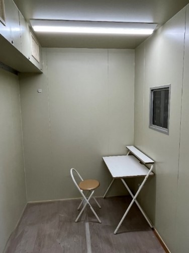装置の入口と室内の写真で見られる様に、かなり狭い部屋ですが、何時でも見学可能で、レンタルとしてご利用も可能です。
