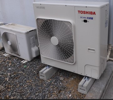 冷凍機は屋外の設置が基本になります。1階であれば、建物の壁、花壇の一部等に設置する例が多く、2階以上は、使用可能なベランダが有れば、ベランダの設置例も多く有ります。