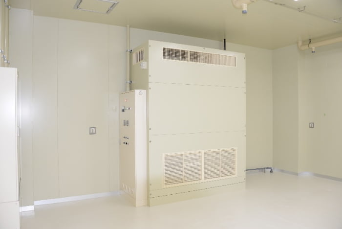 断熱したお部屋の中に、2台のヘパフィルタを組込んだ空調装置一式を設置した例です。