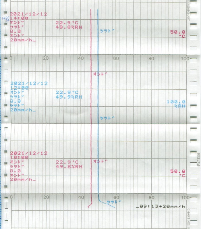 写真はCSC方式の恒温恒湿室で、実際に運転している運転チャートです。
