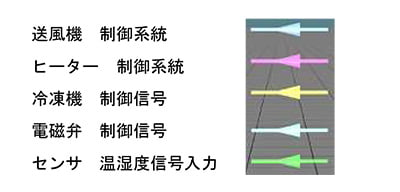 露点散水式には、相対湿度を直接湿度調節計で設定して、湿度を制御する方式も有りますが、湿度の変動幅が大きく、湿度に影響されて、温度も変動してしまう欠点があます。